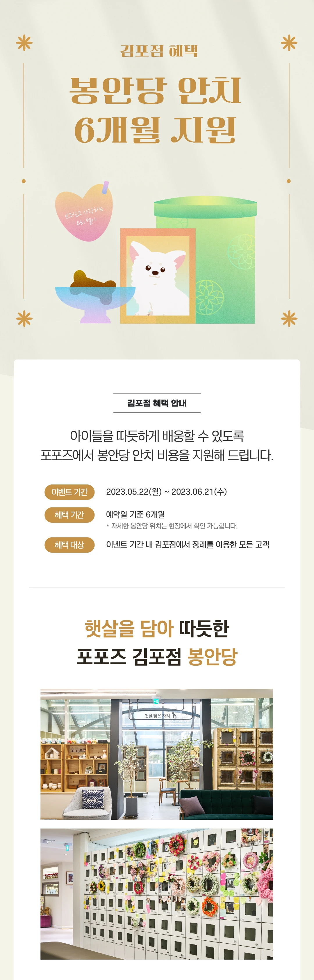 [김포점 혜택] 봉안당 안치 6개월 지원