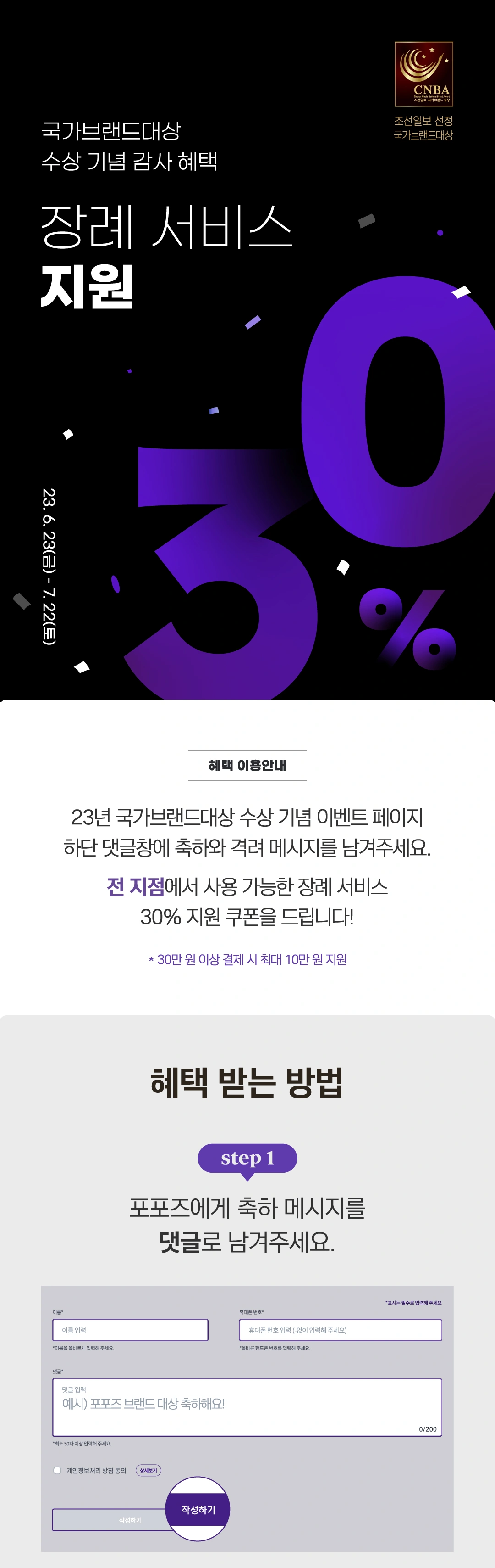 [전 지점] 국가브랜드대상 수상 기념 장례 서비스 30% 지원!