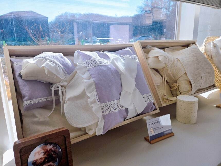 포포즈 용인점 상담실에 반려동물 장례 구성이 진열돼 있다. 박재림 기자 |